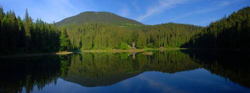 Синевир – самое большое и одно из самых красивых горных озер Карпат. Его еще называют "Морским Оком", "Жемчужиной Карпат". И действительно, если смотреть с высоты птичьего полета, то взору открывается живописная картина - ярко синяя водная гладь в зеленой гуще лесов, с маленьким островком посередине...... Расположено на высоте 989 метров над уровнем моря. Оно образовалось после ледникового периода в результате перекрытия речной долины сдвигами. Впадина заполнилась водой трех горных ручьев. Теперь размер озера, да и глубина, изменяются в зависимости от количества осадков. Средняя площадь — 4-5 га, глубина — 8-10 метров. Самая глубокая точка — 22 м.
